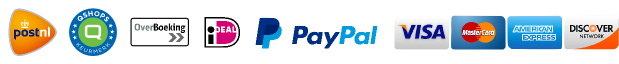 Wij accepteren de meeste creditcards, zoals: Visa, MasterCard evenals de volgende internationale betaalmethoden: SOFORT Überweisung, iDEAL en Bancontact/Mister Cash.