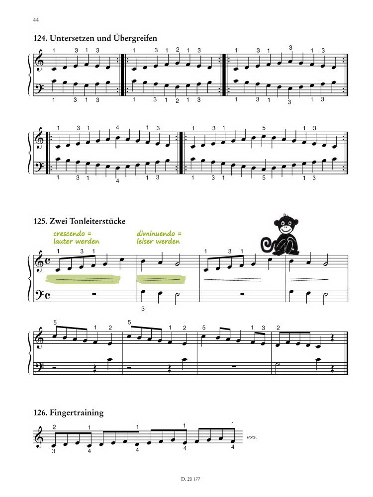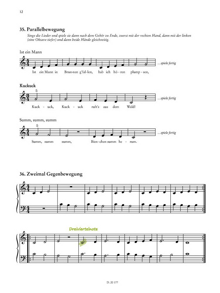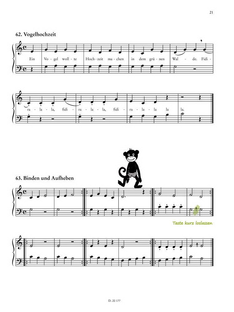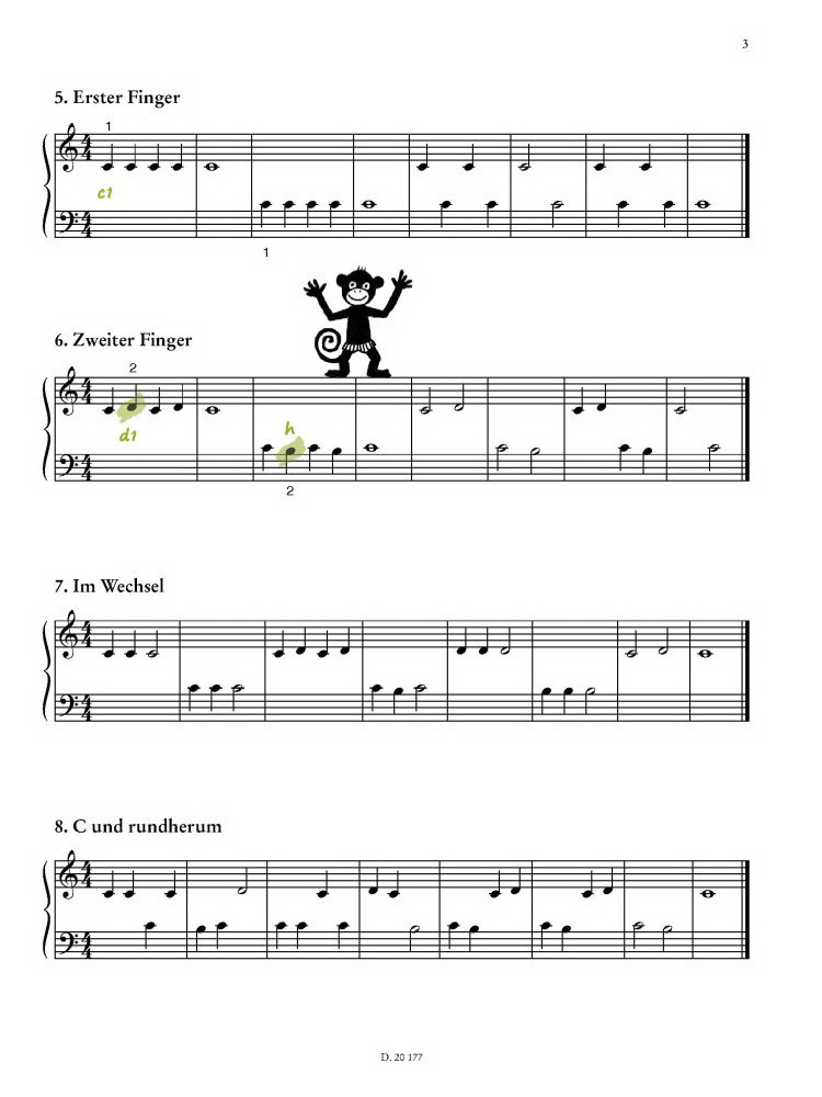 Seit ihrem Erscheinen im Jahr 1972 kann sich die Klavierschule „Ich spiele Klavier“ in ihrer schlichten und auf das Wesentliche ausgerichteten Aufmachung inmitten der Vielzahl anderer Schulwerke behaupten. Das resultiert vor allem aus dem klaren, methodisch klugen Aufbau, der Klavieranfänger/innen in kleinen, sorgsam und folgerichtig auf einander abgestimmten Schritten durch das erste bzw. zweite Lernjahr (je nach Alter und Fortschritt) führt. Das Konzept konzentriert sich bewusst auf die „Basics“ des Klavierspiels und lässt viel Raum für außerhalb des Bandes stehende Beschäftigung mit Erfinden, Improvisieren, Komponieren etc. Als Lern- und Spielmaterial dienen zahlreiche Volks- und Kinderlieder - je nach Bedarf eine willkommene Begegnung mit Vertrautem oder die Gelegenheit zum Kennen- und Singenlernen des überlieferten Liedguts. In der Neuausgabe wurden diese charakteristischen Merkmale bewusst beibehalten. Neben behutsamen Anpassungen des pädagogischen Aufbaus wurden Spiel- und Übungsmaterial etwas erweitert, sowie inneres und äußeres Erscheinungsbild des Heftes aufgefrischt. Siehe auch: Walter Langer, Ich spiele Klavier - Lieder, Tänze, Reime (01 050)Martina Schneider (Hg.), Ich spiele Klavier - Stücksammlung (01 053)