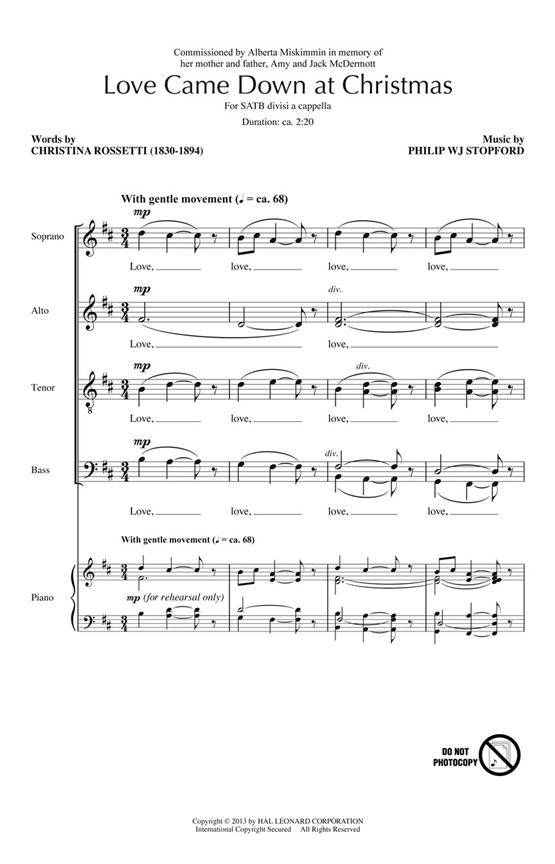 Philip Stopford: Love Came Down at Christmas (SATB)