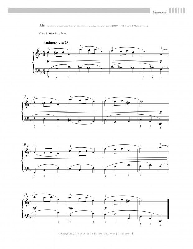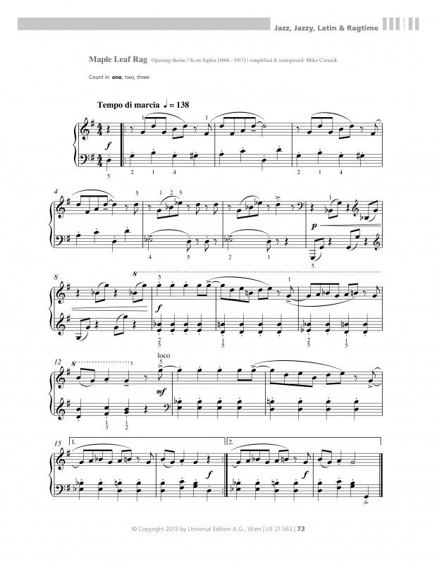 Additional books to complement the tutor for adults and young people Play the Piano! Levels 1 & 2, are now available providing specially arranged favourite pieces in keeping with the technical level attained by the end of each course book. Whilst still under Mike's guiding hand, here is the chance for players to explore and enjoy more beautiful music in a variety of styles, confident that the technical levels are within their capabilities. Includes popular classics by Purcell, Handel, Bach, Mozart, Grieg, Humperdinck, Schumann, Chopin, Rimsky-Korsakov, Brahms, Elgar and more. Also included are traditional folksong favourites along with selections of Jazzy, Latin and Ragtime pieces by Scott Joplin, Mike Cornick and Duke Ellington.